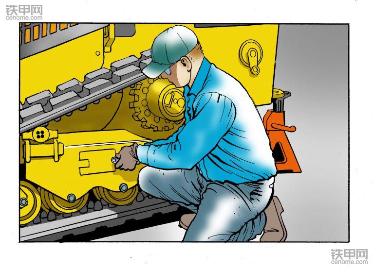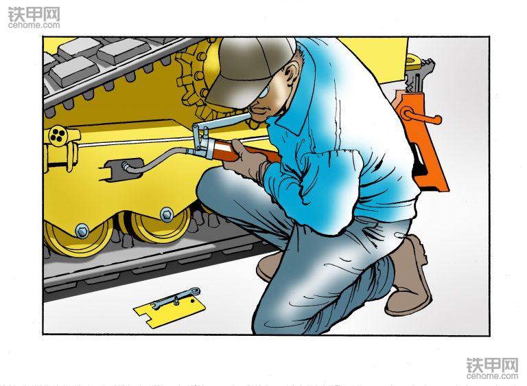 第三步:添加或去除油脂。使用油枪添加油脂收紧履带,清除油脂松开履带。